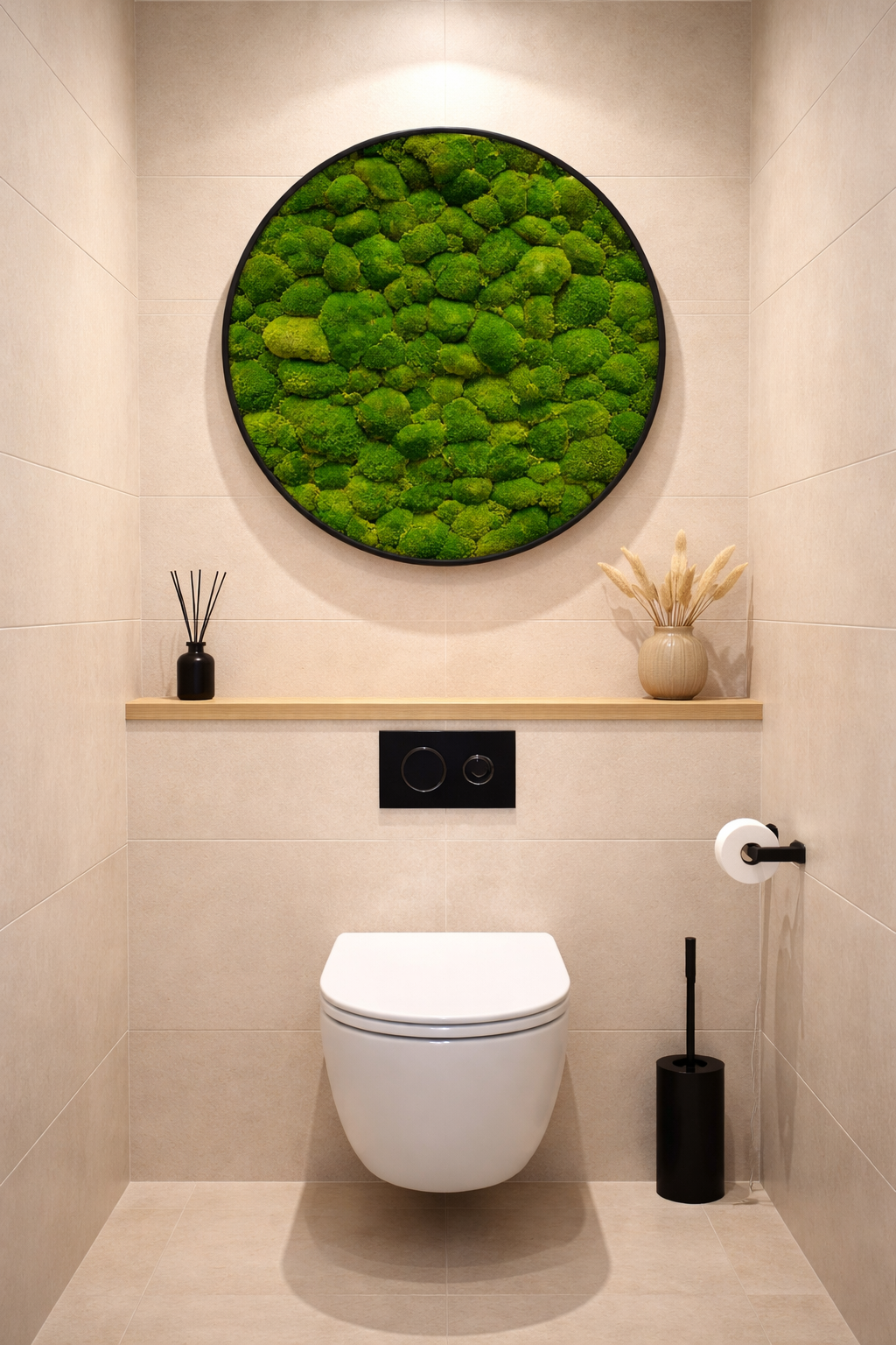 Hang ook een unieke moscreatie in houten cirkel aan jouw wand.